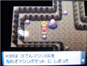 正想从城市的左边离开黑金市时,主角又碰到了对手,对话后得知下一个训练馆在ハクタイシティ[白带市]。之后回到刚才R-203的クロガネゲート洞穴,在里面可以找到TM70 フラッシュ[闪光]。