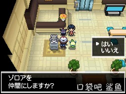 旁边的人问你需要他成为伙伴吗(需要队伍有空位) 选择是他会让你选择200精灵球.然后LV.10佐罗亚进入成为你的精灵 (可以先选择否.然后保存刷性格个体)