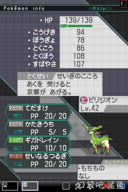 属性:草/格斗 种族:91 90 72 90 129 108 帮手+讨伐(70 100 5上回合己方有怪兽被击倒时,伤害翻倍)+亿万威力吸收+神圣之剑(90 100 20无视目标防御等级)
