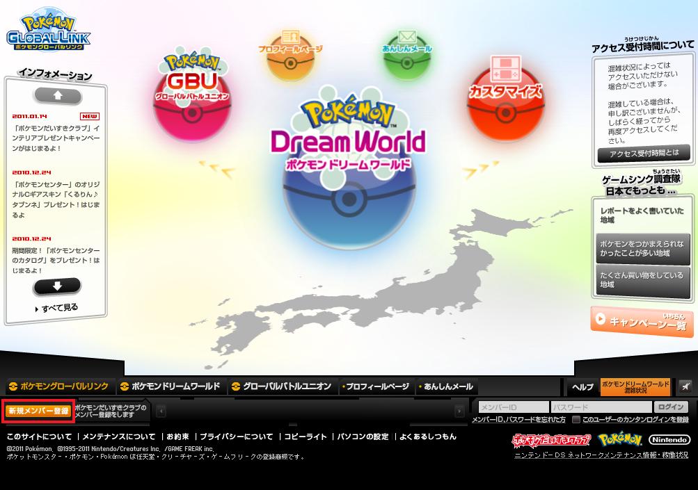 准备工作 注册与绑定 登陆ポケモングローバルリンク 口袋妖怪全球链接(PGL) http://www.pokemon-gl.com/ 1.点击这里(红框)进行注册