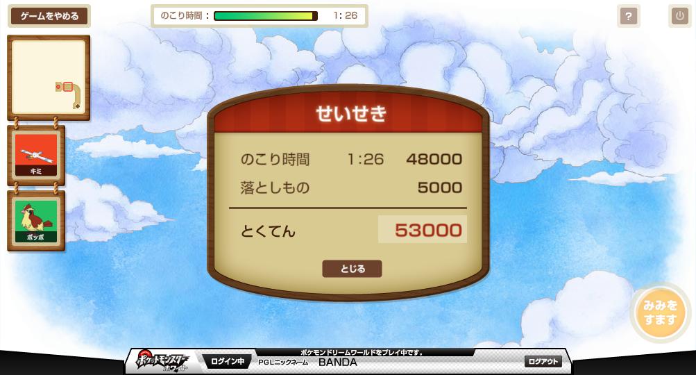小游戏 寻找走失的PM 时间限制:1分30秒 目标:找到目标PM 点击各场景内摇动的树丛/云朵/岩石后会出现PM 在场景中可以捡到一个树果,目标PM一定在树果所在场景的两格之内 点击右下角的按钮可以听声音确认PM的位置,需要消耗几秒钟的时间 「ここにいるみたい!」→就在这里 「ちかくにいるみたい」→一格之内 「そんなに遠くないみたい」→两格之内 「何も聞こえない。」→两格之外