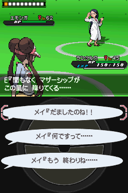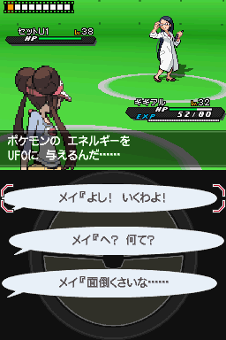 攻略:细胞怪用戏法将电飞鼠的重力石交换过来然后交代换上鳄鱼,鳄鱼用吹吼把电飞鼠赶走set U2上场,台词出现选择