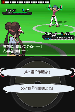 选对台词后w1会用接力棒把w2换上场,这时可以开始攻击了,w2是草系,所以冰雹后天气球是主要手段 第5回合台词出现