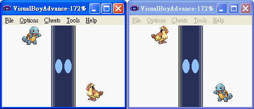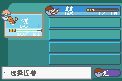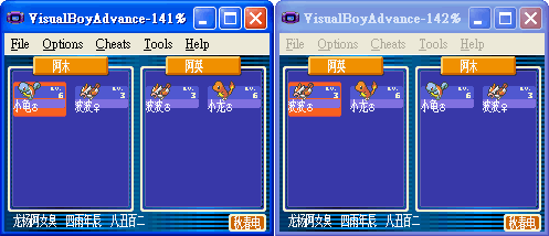 请准备两个不用的存盘,记着要不同! 我们以图下的火红版来做实验,一个火红版选了杰尼龟,另一个则拿了小火龙, 若要将杰尼龟传过去,请将两个游戏都各捉一只精灵! 注意:这是游戏刚刚开始的时候!注意:是可以联机的仿真器