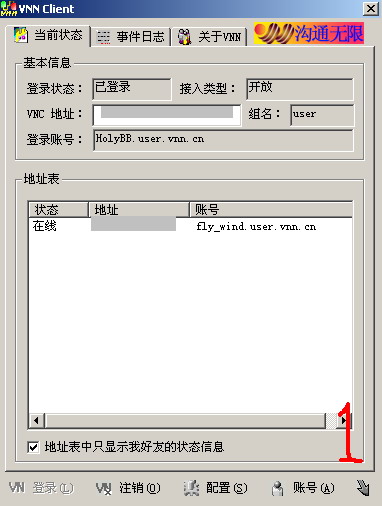 安装好VNN后,打开它。 如图1所示,这个是我已经完成设置后的VNN主界面。