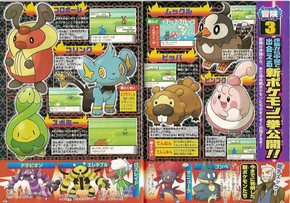 另外,珍珠钻石两大神兽的属性最终揭晓~迪奥露加为钢+龙系,帕鲁琪亚为水+龙系。 第一个会馆的训练家为Kurogane市的Hyouta,战胜他可以获得煤炭徽章~ 游戏开始在双叶镇,主角在双叶的湖边发现了传说中的口袋妖怪,并捡到博士的提箱。把提箱带回去交还给博士后博士会让主角从中挑选一只口袋妖怪表示感谢。