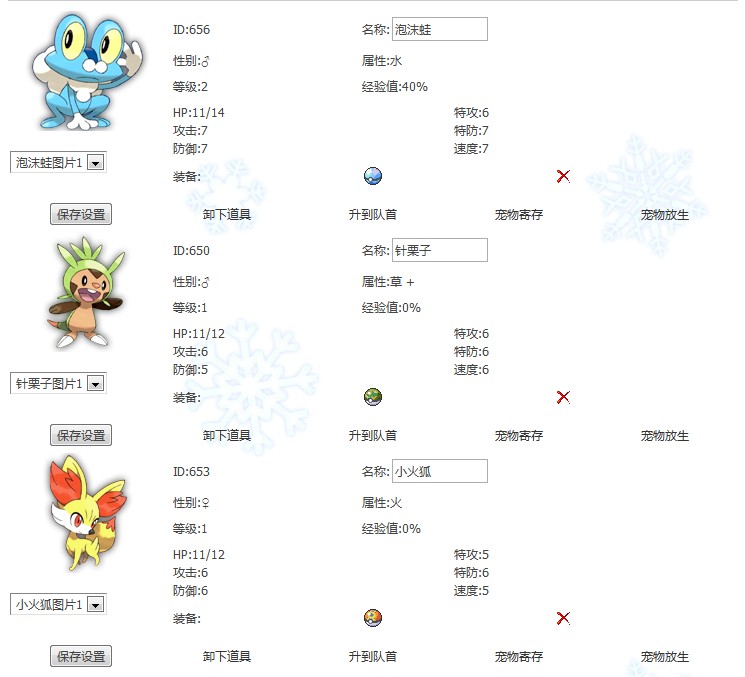 此次发布会上,我们见到了即将登陆的新作会有新的3主角精灵登场,它们分别是火系的「フォッコ」、草系的「ハリマロン」以及水系的「ケロマツ」。