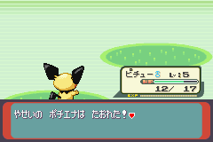 在曾经的红蓝宝石当中,有几个很令人费解的招式,比如硬化植物ハードプラント、爆裂燃烧ブラストバーン、高压水炮ハイドロカノン、高压电ボルテッカー等,因为没有任何一只宠物能通过正常升级的途径学会这些招式。随着火红草绿中三主角定点学习前3个招式,终于解决了这些疑问当中的一部分,可是高压电仍然没有找到自己所属的主人。然而,在绿宝石中,高压电终于也揭开了自己的秘密,成为了超人气宠物NO.25 ピカチュウ 皮卡丘 / NO.26 ライチュウ 雷丘 / NO.172 ピチュー 皮丘(202图鉴中的NO.155-157)的专有招式。下面就介绍一下具体的获得方式。 首先,去弄一只皮卡丘(雷丘也可以)来,最好是母的,如果是公的话需要等通关以后再去抓一只百变怪才行;所谓“弄”,你可以去狩猎区抓,就在刚进去的那片草地就有几率出现,或者也可以从别的存档里传输一只过来也行。