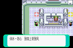 这里说明的是,在对战前,任天堂很人性的让玩家保存记录(如果你是一个刚开始玩的玩家,有LV20左右的6个PM到这边,然后和一个6只LV100的玩家混合存档的话,冒失冲进别人的秘密基地...呵呵呵...各位发挥各自想象吧!