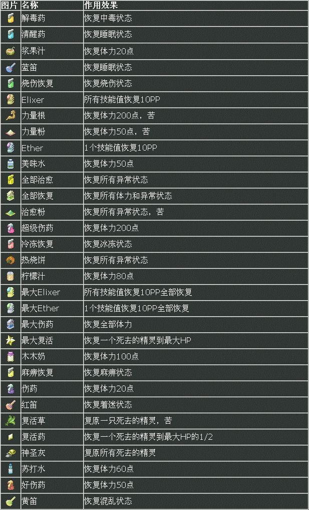 资料来源:http://www.serebii.net此帖所有内容均为本人翻译、编辑、制作,转载请注明。首先是恢复道具。