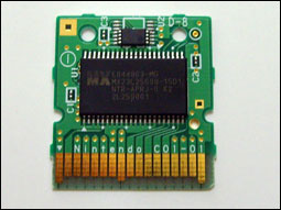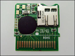 正面使用的芯片应该说质量是非常上乘的,因此也可以预见未来的游戏上不会出现什么问题。背面则是一块ALTERA的MAXII的超大芯片。下放是两块4Mb的存储芯片。(居然超过正版卡,不过从任天堂的内部资料中得知,今后将会出现8Mb存储的游戏。目前已知的4Mb存储的游戏就已经出现了。而新版本ACEKARD已经支持8Mb存档)